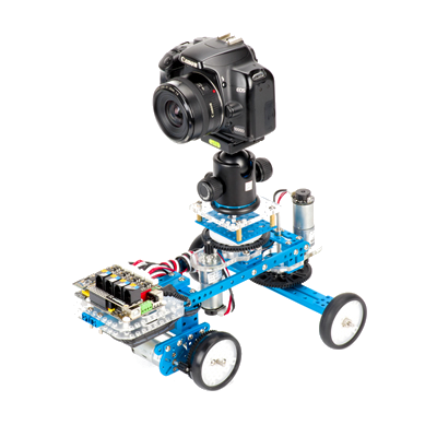 Esta figura consiste en un chasis móvil y una base giratoria de 360°. Si le agregas un Smartphone o una cámara, el robot podrá comenzar a grabar desde un ángulo bajo. También puedes predeterminar una ruta para que el robot la siga, a efecto de que capte ciertos momentos de tu vida cotidiana.