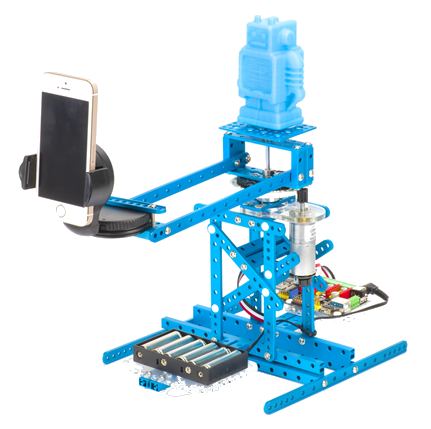 Es una simple pero muy poderosa plataforma rotativa a 360°, que consiste en un soporte de celular y una estructura rotatoria. Puedes agregarle tu celular para realizar tomas panorámicas a 360°, o deja que el robot grabe mientras se mueve alrededor de objetos pequeños. Cuando está conectada a alguna aplicación puede simular un escaneo en tercera dimensión.